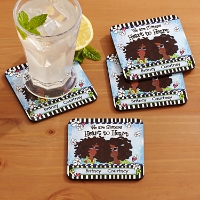 Celebrate sisterhood with this spirited coaster set by Suzy Toronto, capturing the love and creativity of today’s modern women.