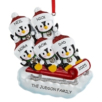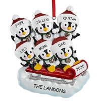 Sledding Penguin Family Ornament