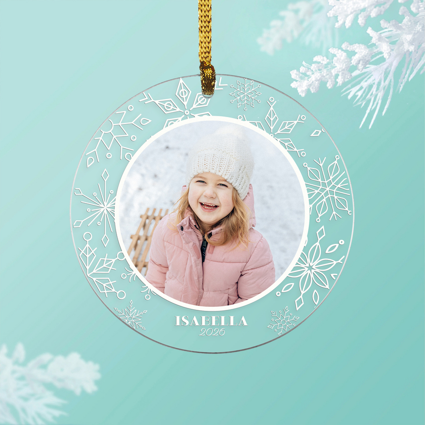 There's no business like snow business. Bring the magic of snowy days right inside to your tree with this personalized ornament.