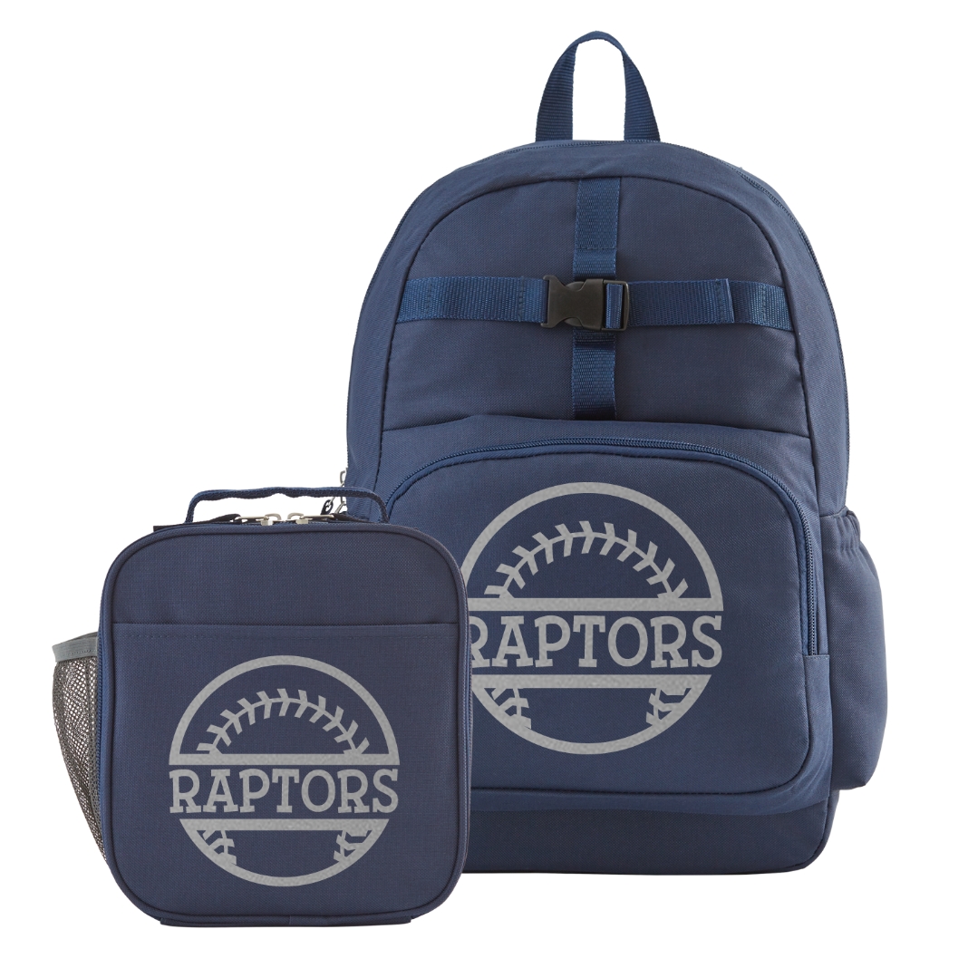 Sporty Fun Navy Backpack + Lunch Box Set - Baseball