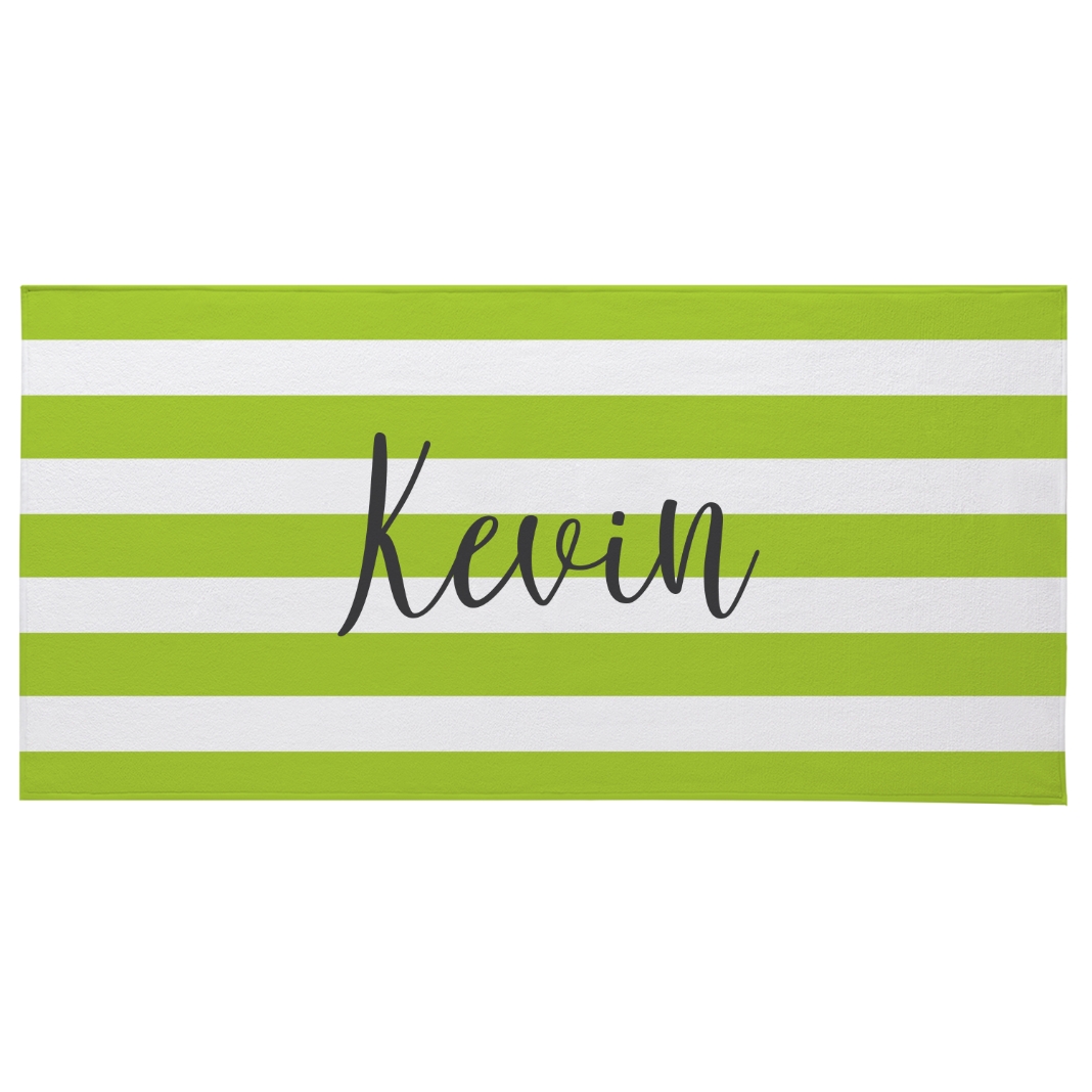 Striped Name Beach Towel - Lime Green - Oversized