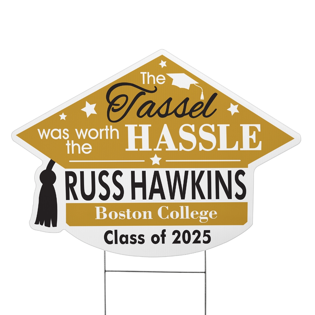 Tassel Was Worth The Hassle Graduation Cap Yard Sign - Gold - Small