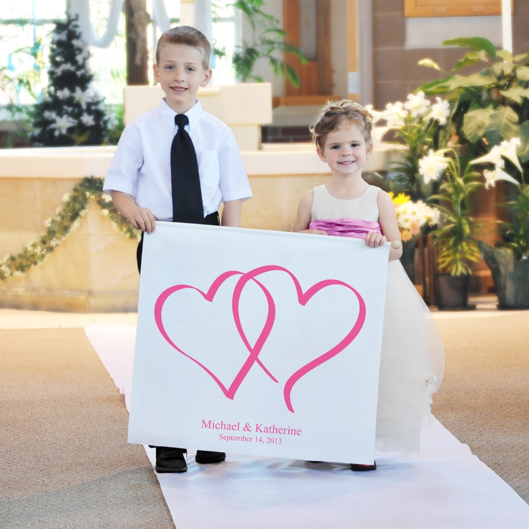 Add charm and a personalized touch of color to your reception with our Two Hearts Aisle Runner. Distinctive interlocking hearts are the perfect accent to the happy couple’s names.