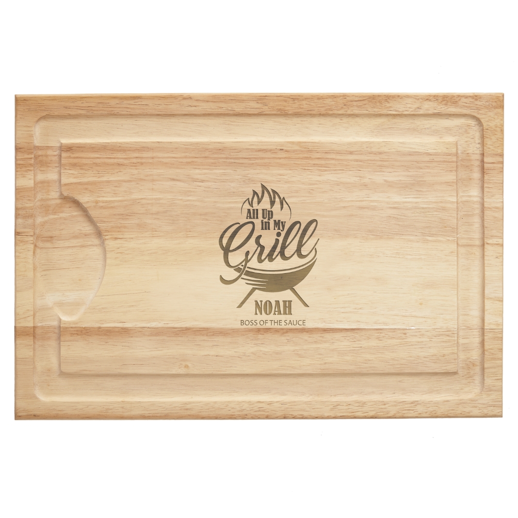 A witty wood cutting board for the grill guru in the house. This solidly crafted board will serve up all sorts of deliciousness in style.
