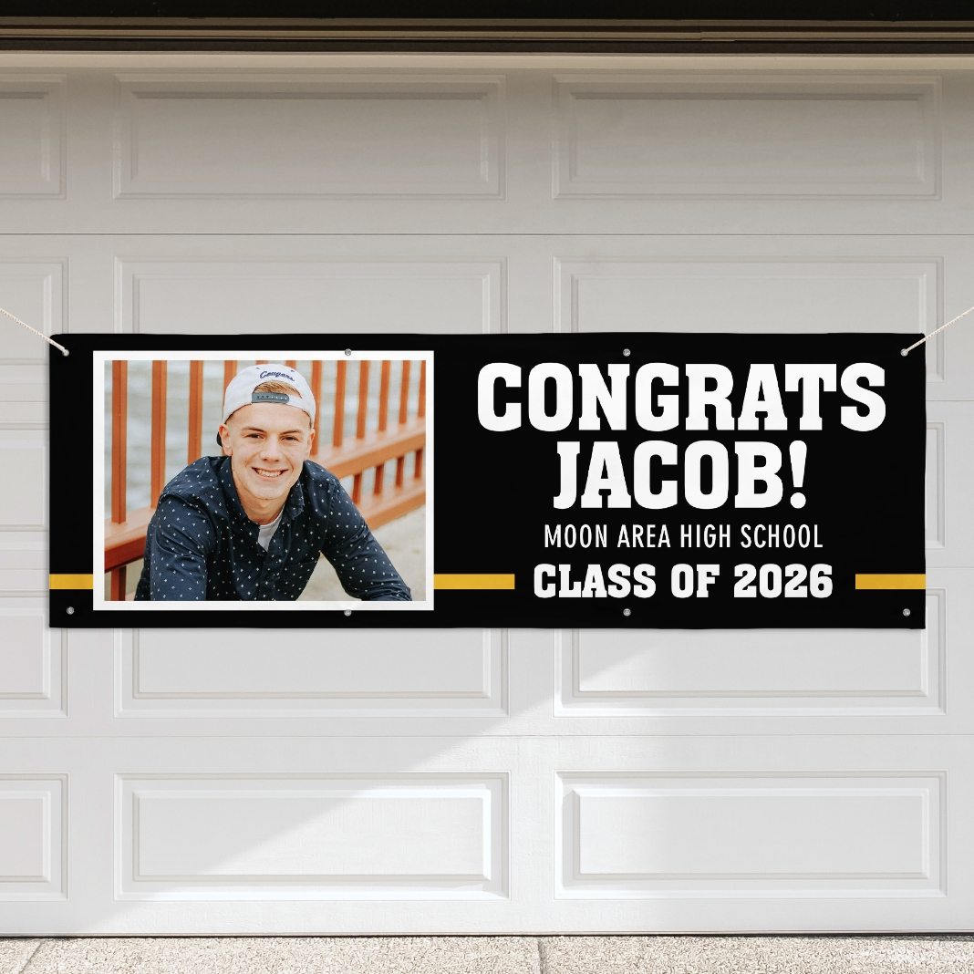 Take the celebration to the next level and let everyone know how proud you are of your graduate with this personalized photo banner.