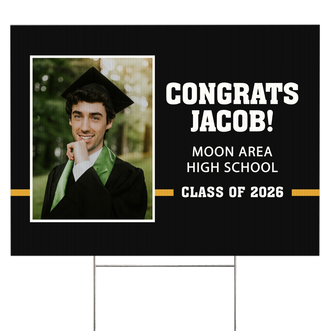 Varsity Stripe Graduation Photo Yard Sign - 2 sided - Black