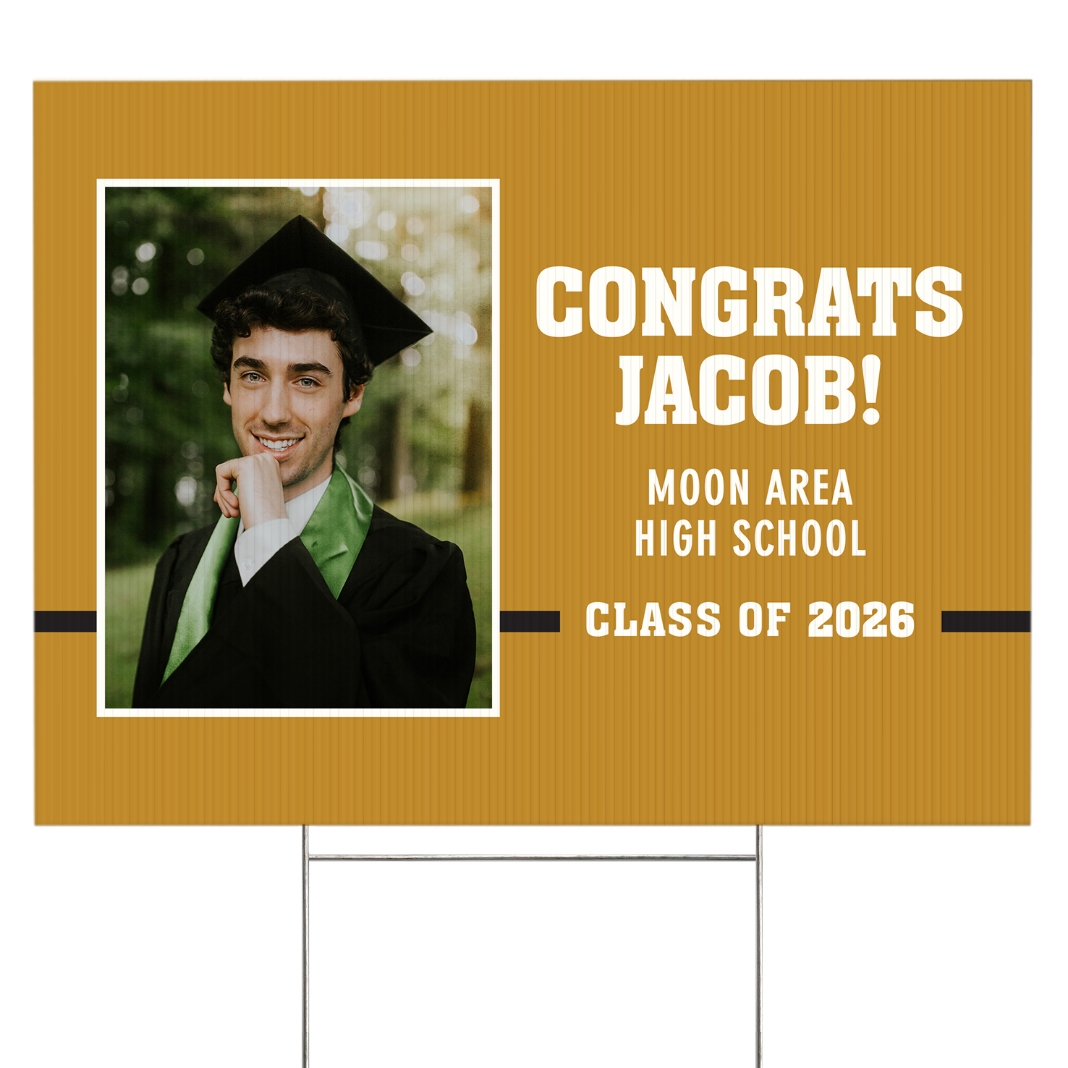 Varsity Stripe Graduation Photo Yard Sign - 2 sided - Gold