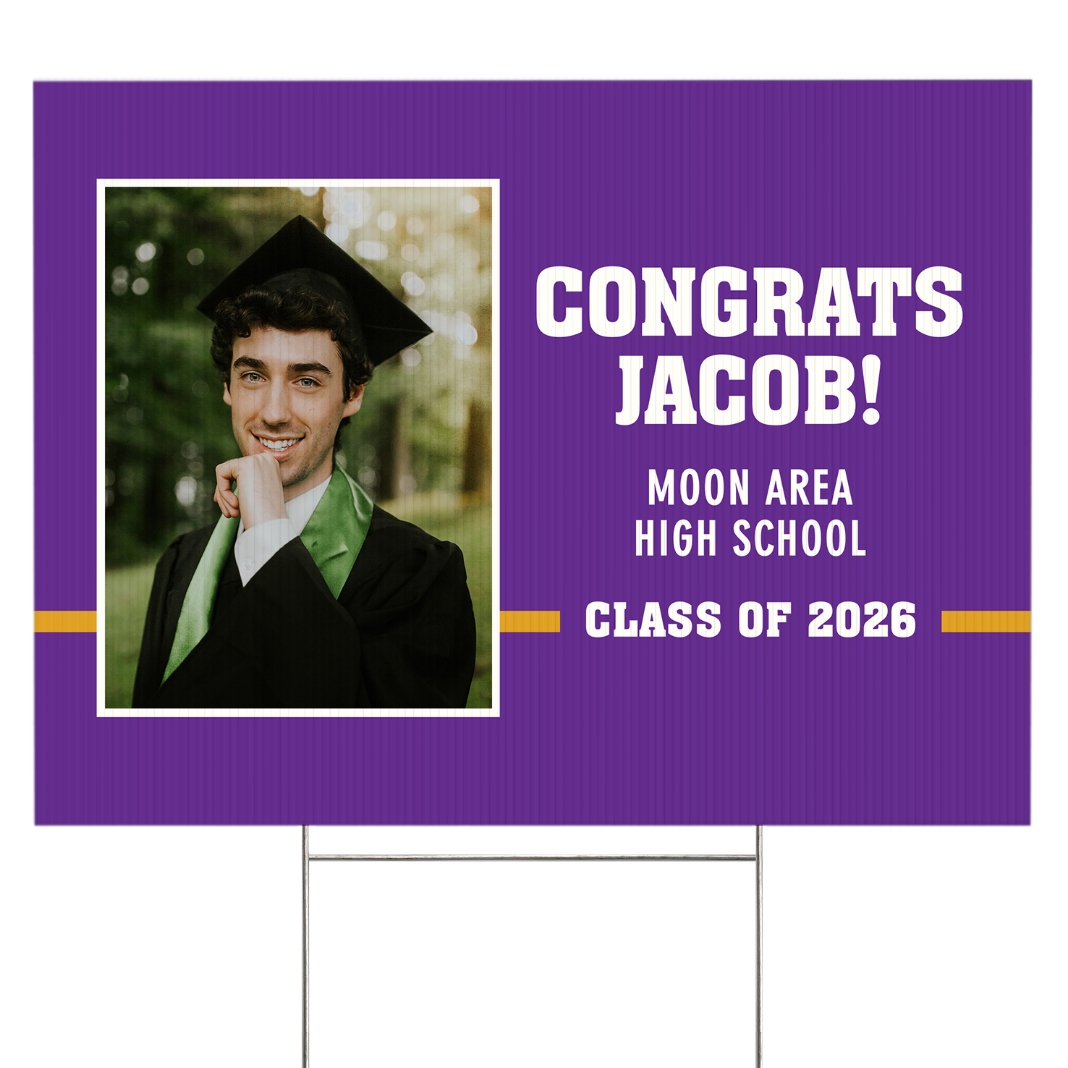 Hooray for the graduate! Take the celebration to the next level and let everyone know how proud you are with this custom yard sign.