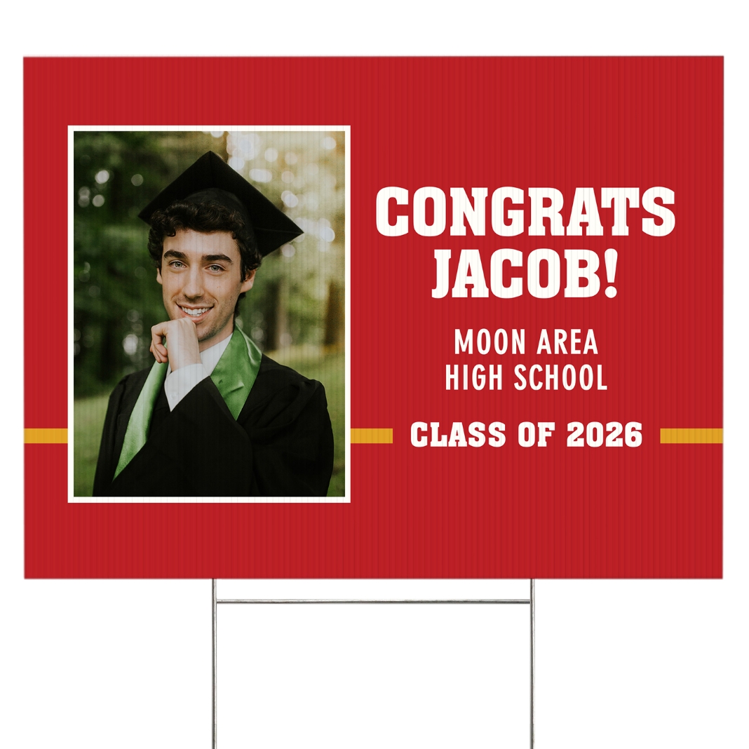 Varsity Stripe Graduation Photo Yard Sign - 2 sided - Red