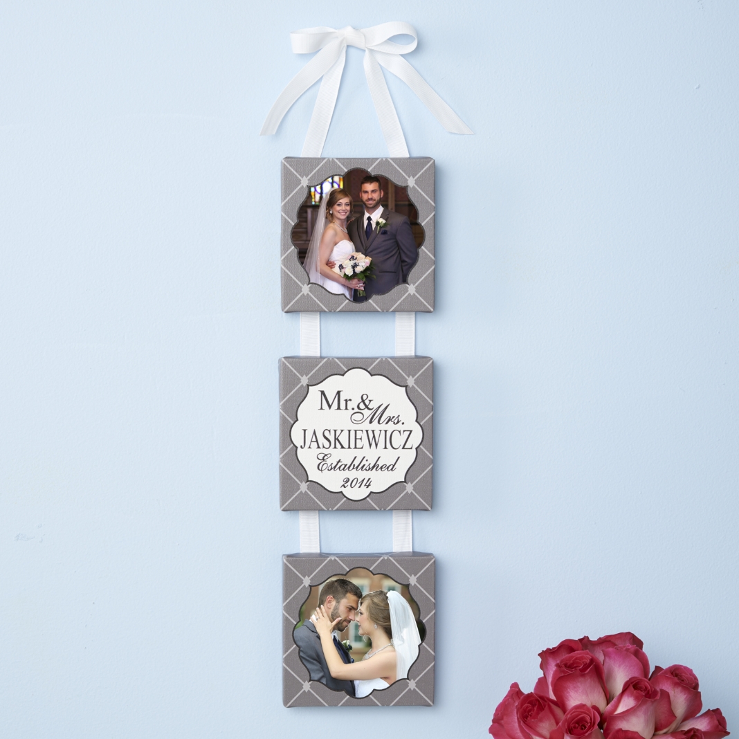 A Personal Creations Exclusive! We’ll turn two of your most cherished wedding photos into inviting wall art for your home. Just upload your digital images and we’ll reproduce them on the top and bottom art canvases. We personalize the middle canvas with your last name and wedding year.